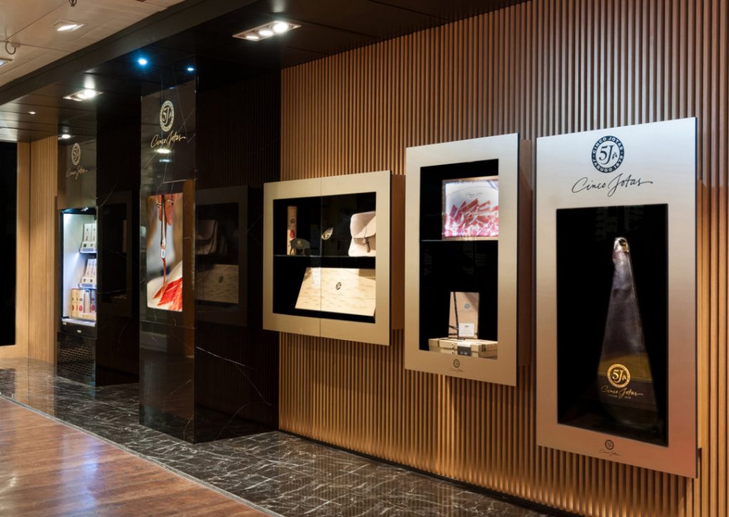 Este espacio está específicamente dirigido al público internacional que visita la capital y busca adquirir productos gastronómicos representativos de la cultura española. Cinco Jotas se ha convertido en una reconocida marca global por ofrecer un producto gourmet español de referencia en la alta gastronomía mundial.