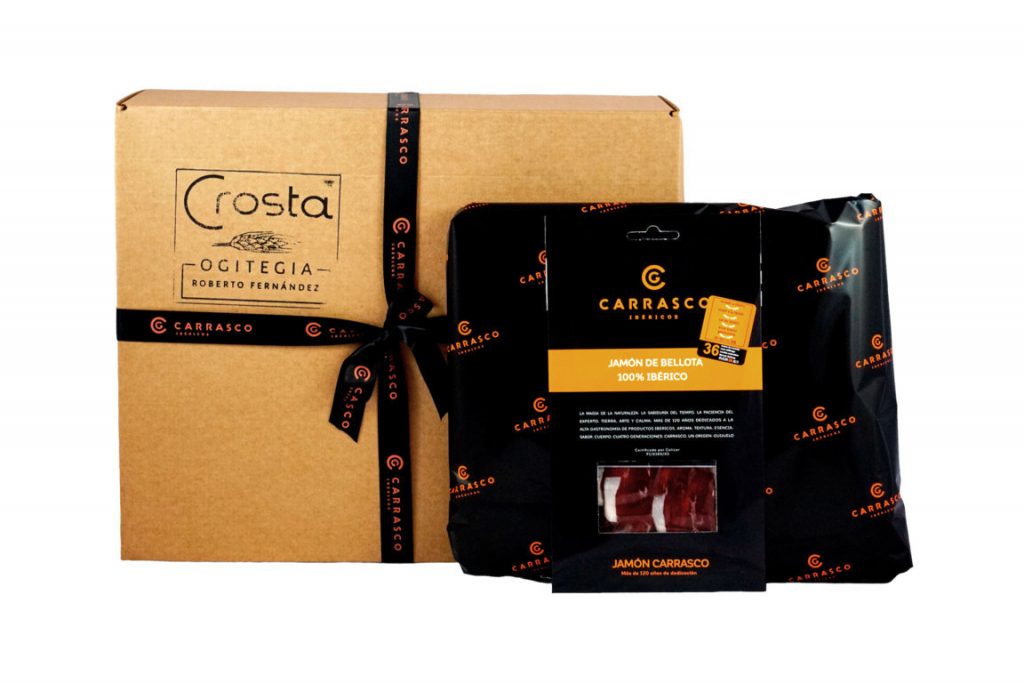 Esta unión tiene su origen en Madrid Fusión 2020, donde Carrasco Ibéricos, en su segunda edición, desafió a 6 panaderías a nivel nacional, a crear el mejor pan para acompañar a su jamón. «II Desafío Pan Ibérico Carrasco» encontró en la propuesta de Roberto Fernández, de la panadería Crosta Ogitegia, los matices perfectos para potenciar el sabor del jamón Carrasco y sus características. Un pan que se ajusta a los matices en boca del jamón Carrasco: dulce, amargo y salado. El dulce lo da la algarroba, la bellota aporta el amargor y el salado lo da la sal de Añana natural de la zona de Vizcaya. Es por ello, que la panadería Crosta Ogitegia fue galardonada con el premio al mejor pan para maridar con el jamón Carrasco.