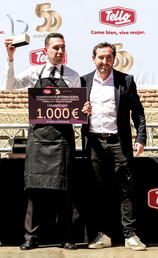 El pasado sábado 13 de abril se celebró la V edición del Campeonato Internacional Solidario de Cortadores de Jamón Ibérico – Trofeo Tello, Ciudad de Toledo. El cortador onubense Juan Antonio Pérez Moro, obtuvo el Trofeo Tello Ciudad de Toledo como ganador de este V Campeonato Internacional Solidario de Cortadores de Jamón Ibérico, que le proporciona una plaza directa para participar en el próximo Campeonato de España 2020. Además, ha recibido un cheque por valor de 1.000 euros, un diploma de participación y diferentes obsequios de la organización.