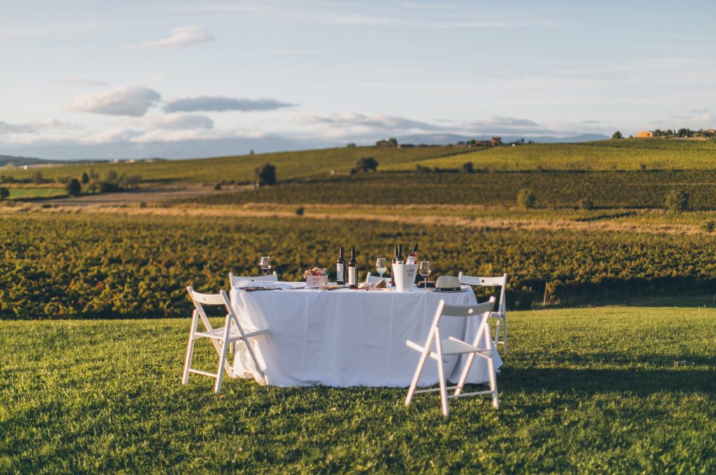 Y junto al suelo, otro gran factor decisivo es el clima, de tipo mediterráneo continental, con una pluviometría anual bastante baja, en torno a los 400 milimetros de precipitación. Ello obliga a pequeños riegos controlados para asegurar la calidad de la uva en los veranos más secos y conseguir también mayor regularidad en las añadas.