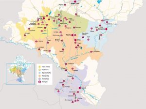 La rica diversidad climática y la tipología de los suelos, así como la influencia del río Ebro hace posible diferenciar en la Denominación de Origen Navarra hasta cinco zonas, cada una con sus propias señas de identidad como son sus vinos singulares y los hitos gastronómicos con los que maridan, pero todas ellas con algo en común: La Identidad Navarra.