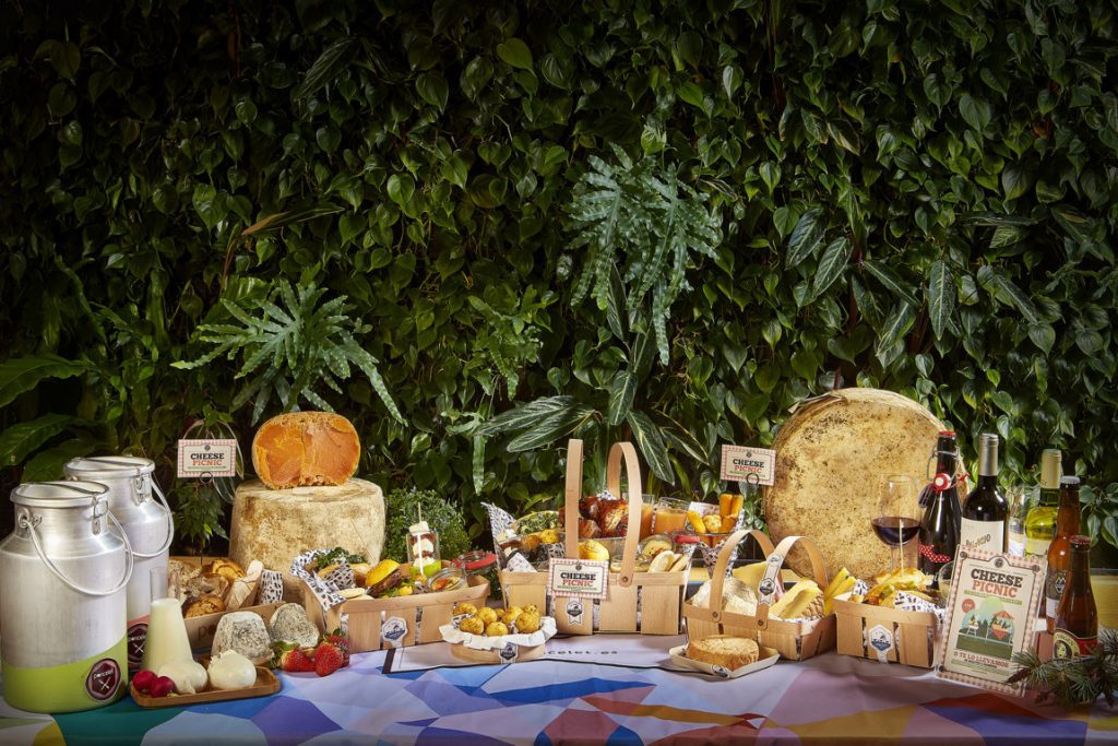 Cheese Picnic que, por 30 euros, incluye selección de tres quesos nacionales, selección de tres quesos internacionales, selección de tres quesos franceses, brocheta de mozarella, tomate seco en aove y pesto, dulces queseros y una selección de membrillo, frutas deshidratadas, frutos secos y regañás o gresinis para acompañar los quesos.