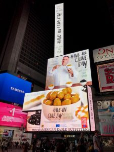 De forma paralela al evento de lanzamiento, se lanzó una acción espectacular de outdoor –publicidad exterior- en pleno centro de Nueva York. La misma consistió en la difusión de la imagen de la campaña durante tres semanas en las pantallas del popular edificio American Eagle, ubicado en Times Square. Esta plaza es muy conocida por sus múltiples proyecciones publicitarias, siendo éste su principal atractivo y la razón que hace que sea uno de los puntos más visitados y frecuentados en Nueva York diariamente. Con esta acción se han alcanzado más de 35 millones de impactos.
