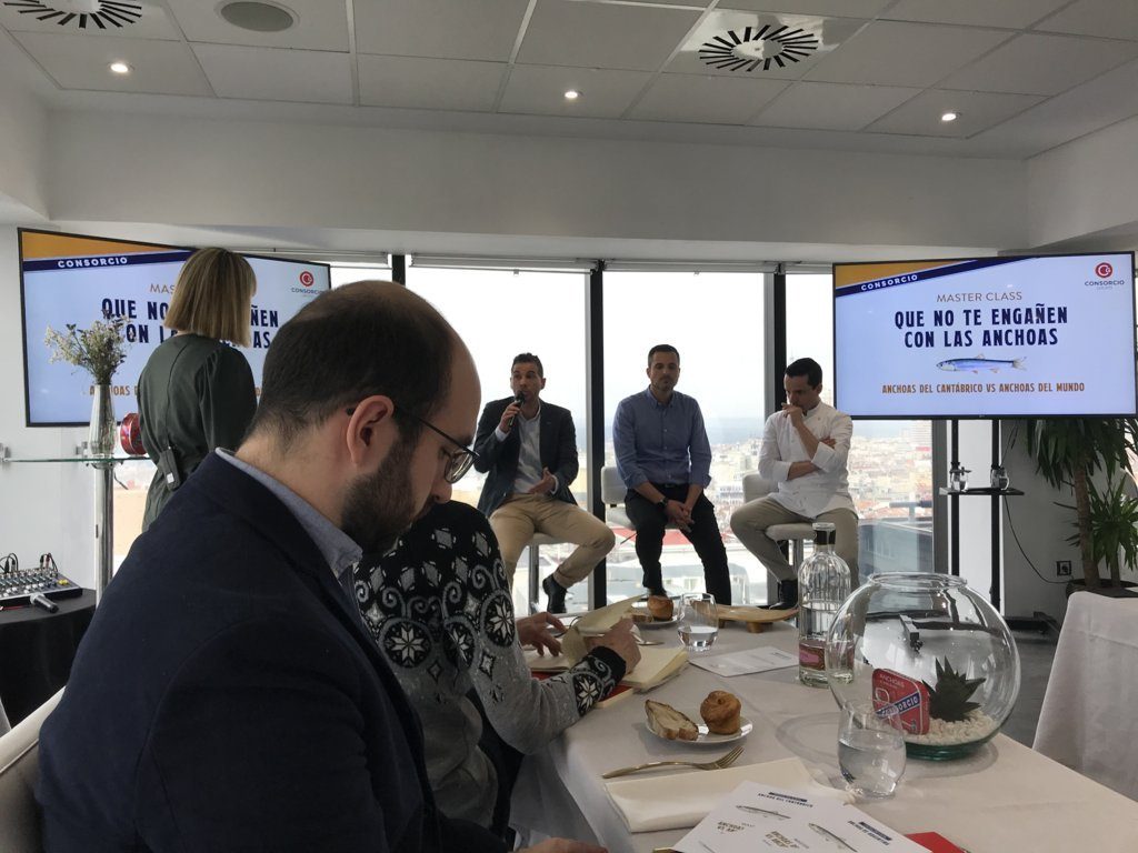 Bajo la premisa de que no existen anchoas buenas o malas, sino que “todo depende del proceso al que se las somete, su maduración y el correcto sobado”, María Aparicio, directora de Comunicación de Grupo Consorcio, daba comienzo a una cata, dirigida por Aldo Brambilla, comprador mundial de anchoa desde hace 18 años; Fernando Prada, maestro salazonero; Eduardo San Filippo, director de Marketing, Comunicación e Innovación del Grupo Consorcio; y José Manuel de Dios, cántabro de nacimiento y chef del restaurante madrileño La Bien Aparecida.