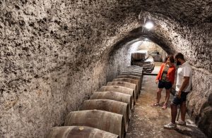 tensión más de los hogares, un entorno de reunión habitual de lugareños. Algunas de ellas también están abiertas a las visitas actualmente, como la de la familia Esteban-Araujo, la única del municipio que sigue elaborando vino aquí bajo la DOP Arlanza. Bajamos con Javier a verla y nos explica la historia del lugar y el proceso de elaboración de forma clara y atractiva. Ha recogido el testigo de sus padres y de su abuelo, que ya elaboraba vino, y además se ha animado a hacer vermut… de forma bastante exitosa, todo sea dicho.