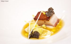 Solicitado siempre que se buscan los mayores conocimientos gastronómicos alrededor de la micología y la truficultura, asegura Óscar García Marina que en cada una de sus recetas se ven tanto el producto como la tradición y la creatividad. “Pero, por encima de todas ellas, a mí me gusta hablar del sabor. La innovación está siempre muy medida y me resulta más importante el respeto a la esencia del producto. Sin olvidar la estética, que forma parte esencial de la experiencia gastronómica. Y, para acompañar las recetas, sugerimos los vinos más elegantes del terruño, con reminiscencias a tierra y mucha fruta. Porque la buena cocina y el buen vino están condenados a entenderse. Me cansan mucho, en cambio, las modas. Ahora hay que utilizar por todas partes el ajo negro y el pichón de Bresse, por poner dos ejemplos, cuando aquí al lado tenemos el pichón de Tierra de Campos, que es m