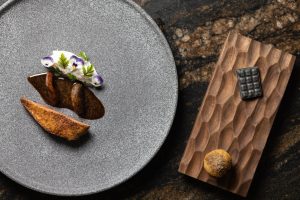 No obstante, como el Ebro es otra importante referencia (“ese Ebro que nos une con el Mediterráneo y nos sirve de columna vertebral”, dice Ramcés), la anguila del Delta recibe también un buen trato en la propuesta, junto con las angulas, mientras una piscifactoría situada al lado del pantano de Grado les provee de trucha y de caviar. “Hasta intentamos traer mejillones de la mejillonera del Delta, pero el arroz es Brazal, que cultivan con agua del Pirineo en muchas variedades. Tenemos una amiga que trabaja en Desarrollo Rural y nos mantiene al día de todas las novedades en materia de nuevos productores. La pandemia nos sirvió también para actualizarnos y comprobamos que la despensa aragonesa tiene prácticamente de todo. Apenas nos falta el mar, pero no está nada lejos”.