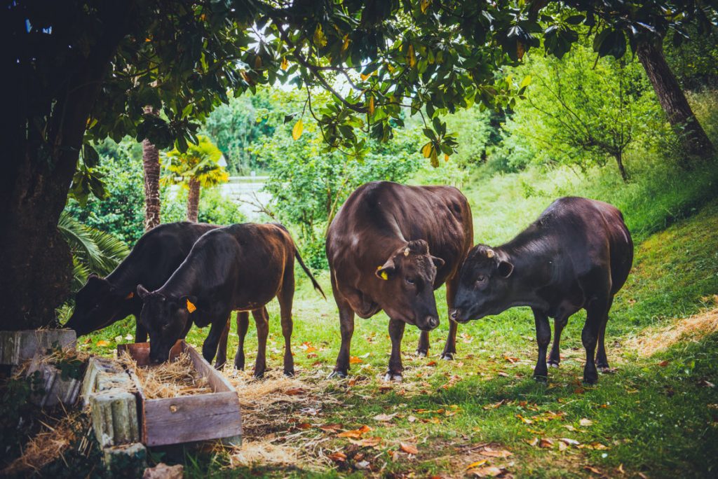 Se trata, por lo tanto, de una “pequeña reserva Wagyu”, donde los bueyes (“un verdadero prodigio genético”, asegura Miguel) viven felices y disfrutando de una alimentación t