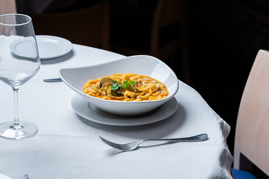 Deliciosas fabes con almejas, un plato emblemático del restaurante Ponzano.