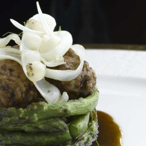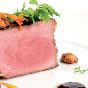 Lomo de retinto con brotes y aceite de avellanas