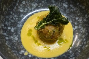 Pero de momento nos seguimos quedando en Cangas del Narcea, porque es hora de comer y hay que pasarse por otro de los rincones imprescindibles: el bar Blanco. Al frente de este establecimiento están los hermanos Quique y Pepe Ron. Aquí siempre hay gente, y con solo probar un pincho de los que sirven barruntamos el por qué… Sus propuestas, a base de producto local y con un toque de modernidad, han logrado llegar hasta el primer puesto del concurso de pinchos de Asturias o el segundo en el nacional de Valladolid. Y ahora, además, tienen como novedad un vermut. Se llama Búpili! y está hecho con vino de Cangas, por supuesto. Es seco y amargo. La genciana, el ajenjo y la angélica son las hierbas que le dan ese amargor, pero también lleva especias y cítricos. La fórmula es secreta pero el nombre es algo bien conocido por los cangueses: es una interjección propia de este pueblo que se utiliza para expresar alegría, entusiasmo o satisfacción. Y es lo que sale decir cuando se prueba esta bebida, ¡claro que sí!