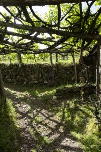 El concejo de Ibias también forma parte de la Denominación de Origen Cangas y hasta aquí llegamos ahora para encontrarnos con el viticultor más joven de la comarca. Es Adrián Fernández, tiene veinte años y elabora ya su propio vino en su bodega Señorío de Ibias, en el pequeño pueblo de Cecos. Es un monovarietal de Albarín Blanco, una de las uvas autóctonas de la zona. Sus padres plantaron los viñedos hace quince años y ahora él ha decidido que su futuro está aquí, al frente de la bodega que acaban de construir y que ya tienen previsto ampliar para acoger visitas. De momento, la mayor parte de estas visitas se realizan en viñedo, en uno que no hay que perderse: viña Ron. Hay partes de la misma que están aterrazadas y partes plantadas en pendiente que alcanza casi el 70% de desnivel. Y todo está rodeado de montes con bosques de castaños, robles, hayas, cerezos, helechos, alisos y fresnos. Como en la viña también hay diferentes variedades (Carrasquín, Verdejo negro, Albarín…) la estampa de colores en otoño es para no perdérsela! La de comienzos de verano tampoco tiene desperdicio, sobre todo en las zonas más altas, donde crecen los brezos y los piornos y retamas. Esta es, además, tierra de cunqueiros o tixileiros, los artesanos que fabricaban objetos de madera y que después vendían por los pueblos.