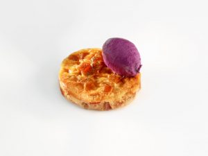 FLAN DE MANZANA REINETA CON HELADO DE HIBISCUS