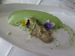 Otro guiño a la pitanza de siempre es su pringá de cocido, mientras que una de las estrellas del verano es el rodaballo que se prepara en una parrilla de sarmientos “pero con un poco de carbón para combinar el aroma de las parrillas de campo con un toque de las parrillas domésticas, porque el sarmiento aporta más picante y el carbón un cierto dulzor; me encanta trabajar con ambos”. En esta receta aparecen también los “ajos prematuros”, una especie de ajos en transición, llenos de matices y con los que prepara una especie de pil pil”. Lo llamados “tostones” de cochinillo (cochinillo asado y troceado) son también un clásico de la casa.