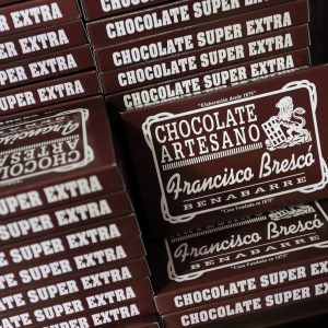 a cuidada delegación en la Barcelona modernista, Brescó es un paraíso chocolatero donde se elabora el chocolate a la piedra como máxima seña de identidad pero en donde también, en los últimos días de enero, casi dos meses antes de Semana Santa, ya había comenzado la producción de sus singulares monas de Pascua. No obstante, la vinculación de la familia Brescó con la actividad chocolatera tiene sus más remotos orígenes en 1875 de la mano del bisabuelo de Francisco, quien, a partir de 1985 retomó este oficio, después de que sus antecesores optaron más por los ultramarinos. Inma nos cuenta que “mi marido fue a Lleida a aprender pastelería pero, poco a poco, se iba interesando por lo que antaño se había hecho en casa. Aparece una piedra de origen azteca y leyendo los escritos del bisabuelo, consigue recuperarla. En Cataluña había un gran interés por el mundo del chocolate en aquellos años y era un buen sitio para empezar a aprender aunque, en realidad, él era un autodidacta que empezó a inventar productos, porque era enormemente creativo. Cuando fallleció buscamos a Luis, un gran especialista que llevaba 12 años investigando con Chocolates Valor y comenzó a idear los bombones de autor, que son otro de nuestros fuertes. Luis, por un lado, respetó todo lo que hacíamos en la época de Francisco y, por otro, incorporó cosas nuevas, renovando además la maquinaria”. Inma Cascalló nos hace también un recorrido por la historia de su “energética y proteica” materia prima, reivindica el origen absolutamente español del chocolate, desde los tiempos de los monjes del Monasterio de Piedra, y la fuerza que este producto “tan caro en su época” tuvo en Benabarre, antigua capital de La Ribagorza, y base de la singularidad de Chocolates Brescó.