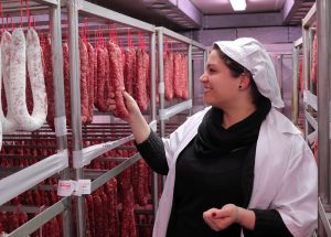 Marta Balaguer, tercera generación de la familia propietaria, es la gerente de Embutidos Aventín. Se enorgullece que, de sus 40 empleados, apenas un par de ellos no son fijos. Aunque la empresa se dedica también a las carnes de cordero y de ternera, más del