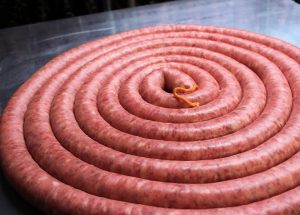en las grandes superficies”. La Asociación de Productores de la Longaniza de Graus organiza cada año, un fin de semana de julio, la Fiesta de la Longaniza, con inmensas parrillas, cuyo atractivo y arraigo popular multiplica por tres la población. Es una Fiesta de Interés Turístico en Aragón desde hace un par de años. Como es una mujer activa e inquieta, Marta está actualmente dándole vueltas a la posibilidad de elaborar el bull catalán, “un producto que me parece interesante. Lo estoy testando con mi abuela y con mi niña pequeña. Si les convence a las dos, tiraremos para adelante”. Aventín organiza muchas visitas guiadas “para que sobre todo los niños comprueban como cuidamos las temperaturas del proceso de elaboración para conseguir una longaniza perfecta. Últimamente tendemos a acortar el proceso de curación”.