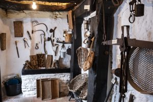 casa habitada, en la que de un momento a otro, aparecerán sus dueños. En una de las habitaciones encontraréis una pequeña exposición con recortes de prensa, documentos, fotografías y carteles con los que se puede seguir la historia de la pasa y su relación con este pueblo. Y en lo que era la vieja cuadra hay objetos como tijeras de podar, cuerdas de esparto, cribas para seleccionar las pasas según su tamaño, moldes para empaquetarlas, etc. Si no lo habéis hecho antes, aquí descubriréis que la pasa de Málaga tiene pepita (y se come así, con pepita). También veréis que se comercializa tanto en grano como en racimo. Las que van así, en racimo, son solo las de categoría superior. Las otras, que son igualmente fabulosas, se deben cortar una a una del racimo una vez listas. Y se hace con unas tijeras de punta afilada… ¡y con mucha paciencia!