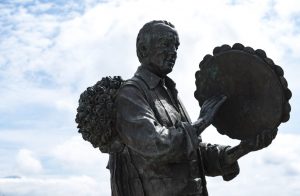 ritorio. Al lugar ya le echaron el ojo los griegos y los romanos, que instalaron aquí un puesto militar, pero su origen es árabe. Ellos fueron quienes le dieron la singular fisonomía de calles estrellas, sinuosas, laberínticas y llenas de recovecos que aún conserva. Siguiéndolas, siempre cuesta arriba, eso sí, llego hasta la plaza de los Verdiales. Una estatua en honor al fiestero se recorta sobre el cielo o sobre las paredes encaladas de las casas, según donde uno se ponga. Los fiesteros son los miembros de las pandas de verdiales. A éste lo han representado tocando el pandero, uno de los instrumentos con los que se interpretan los verdiales, junto al violín, la guitarra, los palillos (castañuelas) y los platillos o crótalos. Así que es un tocaor. Luego estarían los cantaores y los bailaores. El estilo Comares es uno de los tres que se reconocen en la tradición verdialera y, además de las diferencias en cuanto a la interpretación, también se caracteriza porque siempre se mantuvo como algo del pueblo, como una fiesta que se montaba para celebrar momentos como las bodas, los bautizos o el final de la vendimia. Más adela