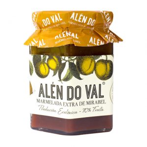 es la exquisita mermelada que procede de la fruta pontevedresa del mirabel. Se trata de una mermelada gourmet y su presentación hace honor a este hecho. Partiendo del estilo de ilustración botánica y conjugado con unas tipografías modernas pero muy elegantes, esta mermelada ecológica se presenta de manera muy afortunada al mercado.
