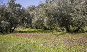 también está plantado de olivos. En esta almazara romana había hasta seis molinos (dos molas hispanienses y cuatro trapetum) y otras tantas prensas de viga con sus correspondientes depósitos de decantación, algo poco usual y que indica que aquí se elaboraba aceite en grandes cantidades; un aceite que, muy probablemente, acabaría en Roma o en algunas de las grandes ciudades del Imperio.