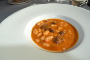 os con muy pocos productos y casi todos ellos procedentes de nuestro entorno. Es decir, soy kilómetro cero en el 90 por 100 de la materia prima pero, como no me gusta ninguna tribu y odio los sectarismos, utilizo el curry cuando le va bien a nuestros platos. Por poner un ejemplo. No obstante, reivindico productos autóctonos como las alubias de Saldaña, un tesoro que preservan apenas seis o siete productores y que hay que poner en valor. A los castellanos y, sobre todo, a los terracampinos, nos cuesta mucho valorar lo nuestro. Las setas, de cardo y níscalos, y la caza, los otros dos emblemas de la tierra, también merecen mayor reconocimiento”.
