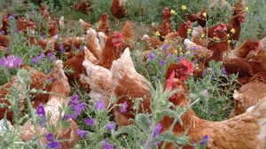 “Empezamos a funcionar en 2014 con 800 gallinas y ahora tenemos 4.000 ponedoras que dan alrededor de 3.500-3.800 huevos ecológicos diarios”, explica. Las gallinas disfrutan de una libertad total, están sueltas desde las 8 de la mañana hasta la noche y salen al campo cuando quieren, siempre bajo la atenta mirada de Donatella.