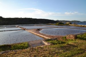 e esta actividad salinera. pero seguro que le sirve como aliciente la magia del escenario, con esos atardeceres memorables en el puerto de Fornells y el vuelo de aves que muestran una riqueza ornitológica increible. El espacio está abierto al público y allí se les explica la extracción manual de la sal y como la flor es la primera capa de sal que se crea en la superficie y es rica en oligoelementos y minerales. También se alquila para todo tipo de eventos porque el escenario es realmetne único y recorrer estas salinas junto a este viejo lobo de mar enamorado de Menorca es todo un privilegio. Mayor nos recuerda que “la flor, un producto delicatessen que está de moda en el mercado, tiene menos concentración de cloruro sódico pues se recoge de las balsas nada más cristalizar y de form