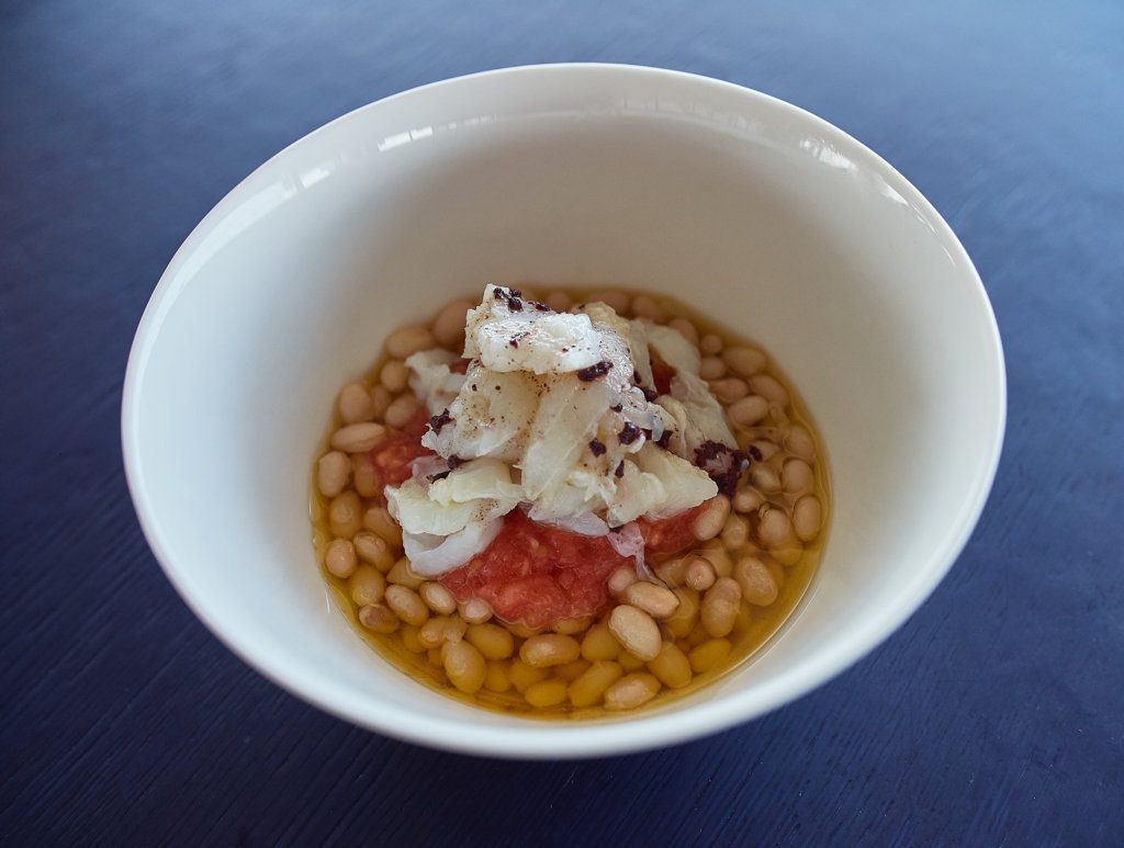 El empresario y cocinero Enrique Valentí inaugura un nuevo concepto gastronómico en la planta 23 del Edificio Colón, el que fuera el primer rascacielos de Barcelona, que viene a complementar la oferta de Marea Alta, su proyecto más personal, especializado en pescados y mariscos y ubicado en el piso 24. Su nombre, Baroz (Avinguda Drassanes, 6-8. Barcelona) surge de la unión de las palabras ‘bar’ y ‘arroz’ y su propuesta, a base de tapas clásicas y arroces de temporada, es un homenaje a los chiringuitos arroceros de la Barceloneta preolímpica. En la imagen, su «empedrat» que es mitad «esqueixada».