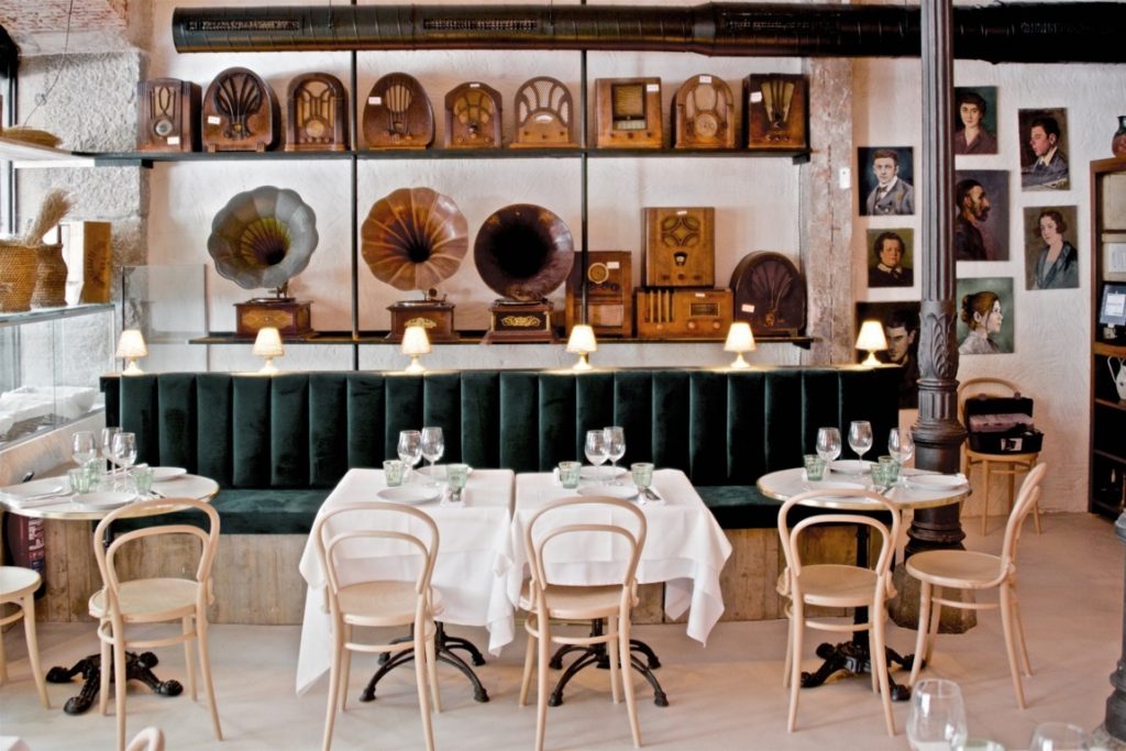 gramófonos antiguos trasladan al comensal a los inicios de la restauración y la gastronomía española, cuando surgen las casas de comidas tradicionales que son el origen de los restaurantes de hoy en día.