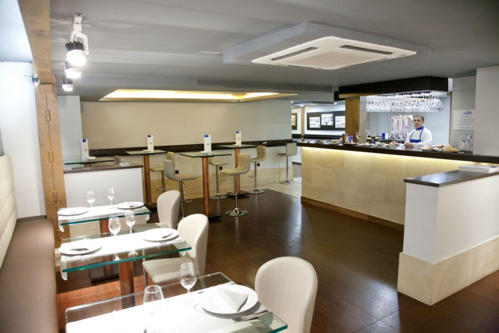 Una bonita cava a la entrada garantiza el cuidado en la temperatura y servicio de los vinos de esta casa con reconocidas referencias a precios coherentes.
