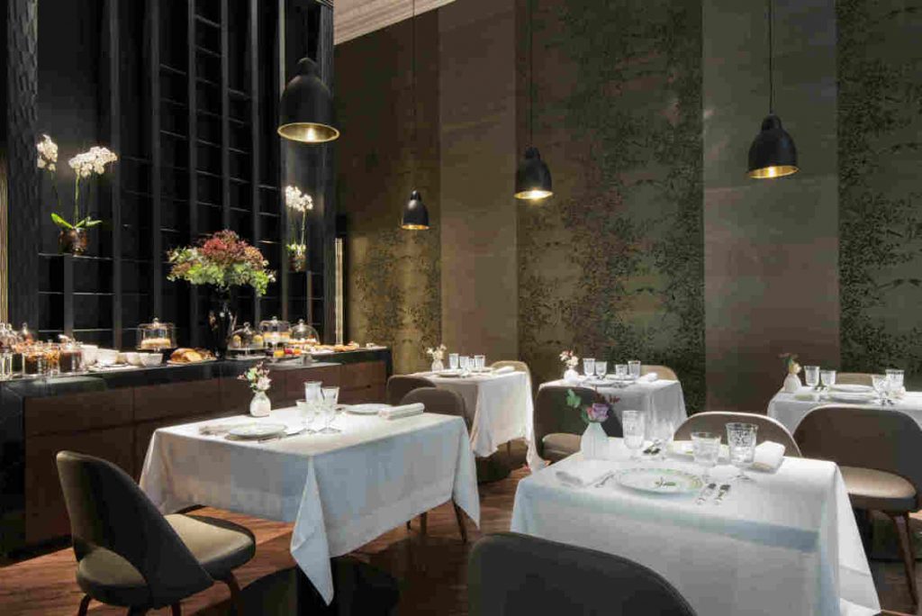 Y es que su oferta gira en torno a una completa experiencia culinaria que comienza con una degustación de diez creativos snacks en el hall del hotel, un espacio de serenidad, cubierto por una impresionante cúpula y arrullado por el sonido de la fuente mudéjar que lo preside. Ésta continúa en el comedor, con capacidad para unos 18 comensales y donde destaca el trabajo de interiorismo: el elegante papel de las paredes de la firma Arte-Internacional, el majestuoso buffet en mármol y madera de Marotte diseñado a medida por el equipo de interioristas de Mercer Hoteles, las mesas Gubi, las sillas de Knoll y las lámparas de Viabizzuno. Aquí, en el comedor, se puede pedir a la carta mediante una económica fórmula que permite elegir desde dos platos de la carta por 36€, hasta seis platos por 72€. Por último, los postres se sirven en el Fizz Bar pudiendo terminar la cena con uno de los cócteles del célebre barman Diego Cabrera.
