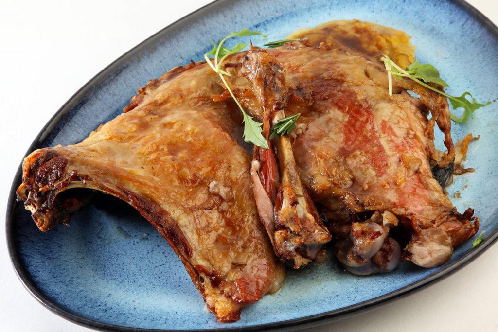 La oferta navideña del chef David Marcano en Marcano (Doctor Castelo, 31. Madrid) mantiene como puntos firmes algunos de sus platos más celebrados, renovándolos y jugando con los ingredientes que los acompañan. Nacen así las diferentes versiones de la merluza de pincho de Burela que podemos probar con ragú de setas y verduras de invierno, con salsa de tinta y rabas de calamar o braseada con pak choi y verduritas y si preferimos el bacalao, está el lomo alto con estofado de sus callos. Tampoco podían faltar los platos de larga cocción, que tanto identifican al chef, así que tienen el rabo de toro con patata risolada, la carrillera ibérica estofada con cremoso de boniato y cous cous de verduras o la Tarrina de cordero lechal con berenjena ahumada, queso y su jugo. Entre los platos para llevar a casa, el cabrito lechal cocinado a baja temperatura (en la imagen).