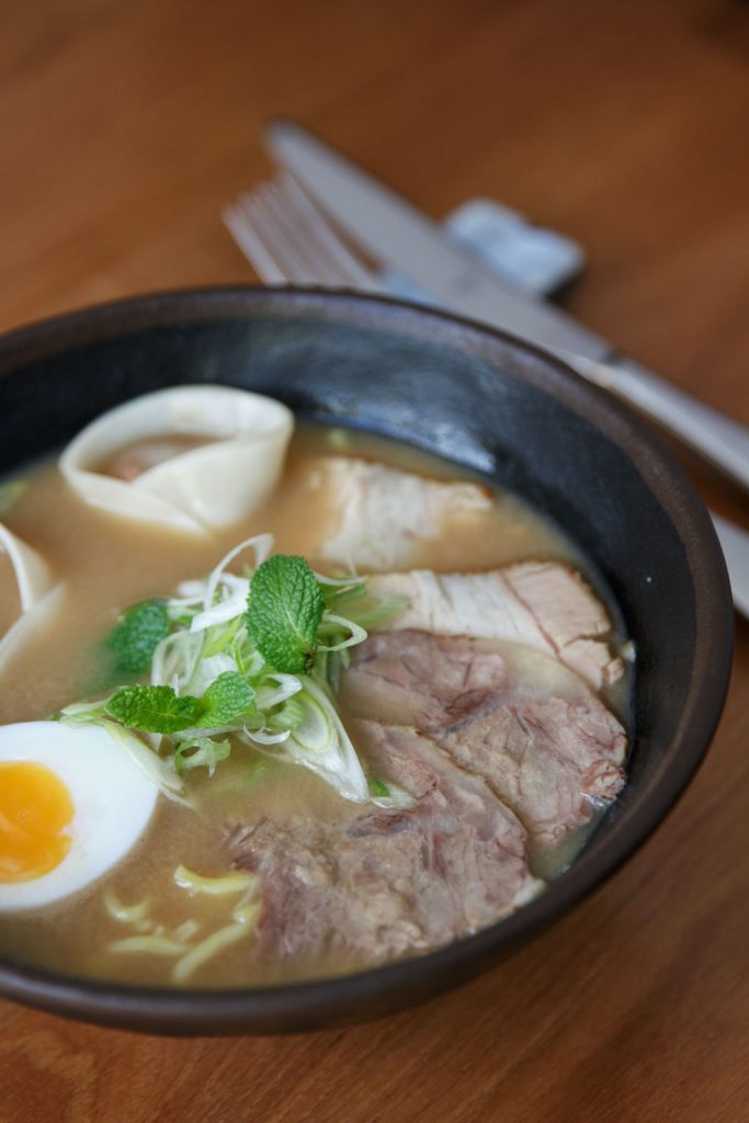 El ramen de cocido madrileño de Latasia llega este invierno a la carta con vocación de convertirse en un clásico del restaurante y parte de la fusión de dos platos muy tradicionales en sus respectivas culturas y con cierta similitud entre ellos. No en vano al ramen, un plato de origen chino que los japoneses han sabido hacer suyo, se le ha llegado a llamar en nuestro país “el cocido japonés”. Esta vanguardista versión tiene su base en un caldo elaborado con todos los ingredientes del cocido, incluidos los garbanzos. Lleva noodles (en lugar de legumbres), el huevo típico del ramen (con poca cocción y marinado en soja, mirin y azúcar) y unos dumpling rellenos con la ropa vieja de las distintas carnes típicas del cocido.