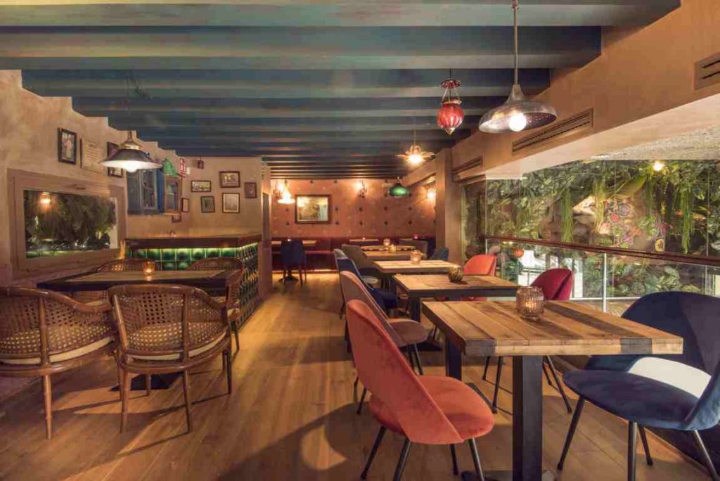 Una oferta versátil y exótica que se adapta a la perfección al espíritu del restaurante: colorista, vibrante y cosmopolita. Entrar en Surya Madrid es descubrir la vibrante ciudad de Mumbai, sus calles, sus puestos de comida callejera clandestina, su cultura y en definitiva el estilo de vida que intenta transmitir su creador Ketan Trivedi. Así, el local diseñado por el artista argentino Fabio Camarotta y la interiorista canadiense Alicia Bowers cuenta con tres espacios diferenciados concebidos para diferentes momentos. La planta calle es el espacio más informal, una sala al estilo de las calles de Mumbai que cuenta con mesas bajas y una mesa alta, un sofá y una colorida camioneta con todo lujo de detalles que sirve de barra para picar y probar los cócteles de inspiración exótica que tienen el sello de Ketan. La planta de arriba alberga el salón del típico hogar hindú donde no faltan detalles como la chimenea, lámparas y papeles de mosaicos todos ellos inspirados en la India colonial. Un lugar donde tiene un protagonismo especial la jungla de Surya que esconde un elefante pintado, símbolo cultural indio. Por último, el sótano de Surya, aún sin inaugurar, albergará un speakeasy con sofás, mesas bajas y sillones, mesas redondas y taburetes, graffities de escritura hindi en los baños y una barra de coctelería de autor donde se podrá disfrutar a ritmo de DJ hasta altas horas de la madrugada.