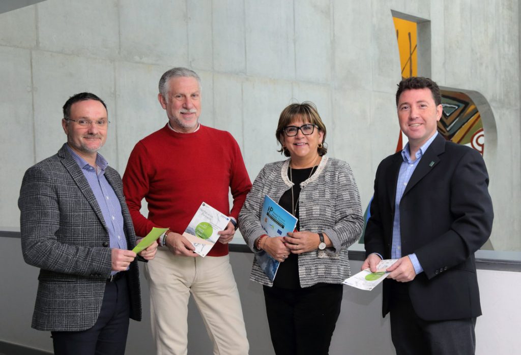Hecho en los Pirineos, I Congreso del producto y la gastronomía de los Pirineos, impulsado por la Agrupación Europea de Cooperación Transfronteriza (AECT), en colaboración con el Ayuntamiento de Huesca y la Cámara de Agricultura Hautes-Pyrénées, convertirá a Huesca en la capital del debate agroalimentario y gastronómico, del 18 al 21 de marzo, con el Palacio de Congresos como sede central. En la imagen, los responsables del congreso. De izquierda a derecha, Pedro Salas, director HP Huesca Pirineos Hautes Pyrénées; Fernando Gallego, concejal del Ayuntamiento de Huesca; Elisa Sancho, Vicepresidenta de la Diputación de Huesca; y Fernando Blasco, director del Congreso.