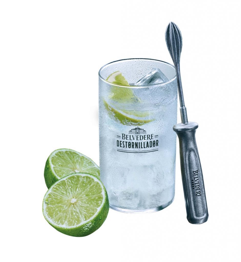 El vodka de lujo propiedad del grupo LVMH revive este verano el Destornillador Belvedere, un refrescante combinado de vodka con naranja, lima o pomelo que rinde tributo a uno de los cocteles más legendarios de la historia. En la imagen, el Destornillador con lima.