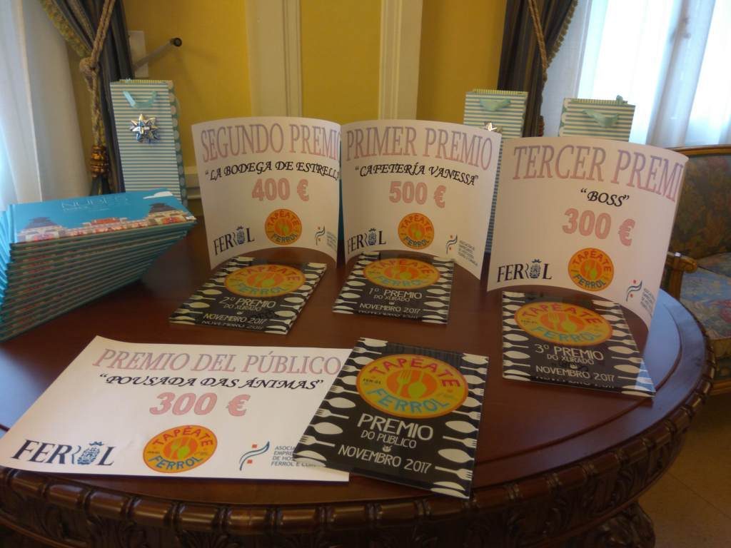 El Salón de Actos del Concello de Ferrol ha acogido la rueda de prensa y consiguiente entrega de premios a los ganadores del certamen de tapas Tapéate Ferrol 2017. El acto estuvo presidido por el alcalde de Ferrol, Jorge Suárez; el concejal de Turismo, Jesús Basterrechea y el presidente de la Asociación de Empresarios de Hostelería de Ferrol y Comarca, Emilio Vázquez.