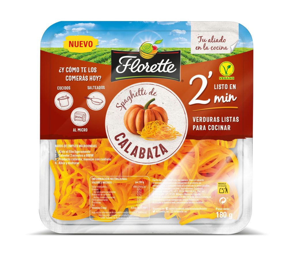 El 96% de los españoles consume verduras de forma habitual (1 o 2 veces al día) pero piensan que, aunque son alimentos saludables, siguen siendo aburridos y difíciles de preparar. Esta es la razón por la que Florette, una vez más, ha decidido innovar en la forma de presentar su último lanzamiento: Spaghetti de Calabacín y Calabaza. Se trata de una manera diferente de seguir incluyendo en la alimentación verduras frescas de la máxima calidad y sabor de una forma mucho más divertida.