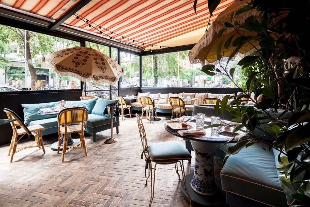 Lo cuarto, su estructura y decoración. Los 30 m2 de la terraza del Madame Sushita están muy bien aprovechados. Sofás de inspiración colonial con sombrillas que recuerdan a los ‘glampings’ más TOP, opulentas mesas de porcelana o de orfebrería, una iluminación elegante, un sistema de toldos que hacen que se cubra o se descubra parcialmente toda la zona exterior, un hilo musical con la más moderna música chill out y house con DJs en vivo, motivos vegetales por doquier para refrescar el ambiente y ese estilo imperante en todo el local, inspirado en la participación japonesa en la Exposición Universal de París de 1867 hacen de esta terraza un espectáculo culinario pero, también, visual.