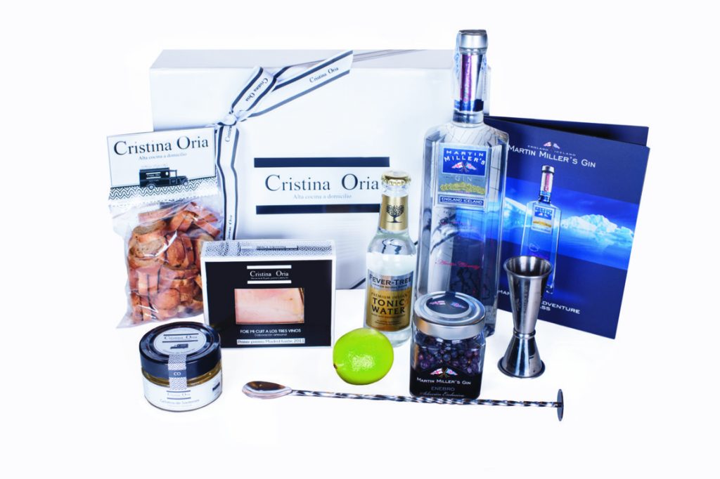 El pack en sí contiene en su interior el foie Mi-cuit de Cristina Oria, gelatina de Sauternes ideal para acompañar el foie y pan de pasas, todo esto en una caja con papel de seda y lazo para que la presentación tenga el sello distintivo de Cristina Oria. Además, la icónica botella de Martin Miller’s Gin, cuchara mezcladora y medidor de la misma marca, tónica, lima, enebro y por supuesto la receta para crear el gin tonic perfecto. ¡Un obsequio único para poder degustar la mejor combinación!
