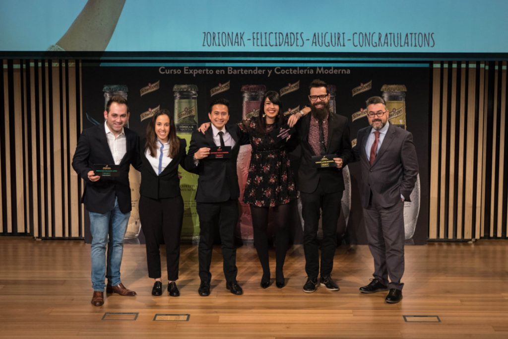 Los cinco alumnos del Basque Culinary Center que han resultado vencedores del concurso organizado por Schweppes recibirán 500 € para completar su formación como expertos en mixología moderna. El I Reto Schweppes es una iniciativa de la icónica marca líder en mixología para despertar la curiosidad, el talento y la creatividad de los jóvenes profesionales del combinado y se enmarca dentro del Curso Experto en Bartender y Coctelería Moderna impartido por el centro en colaboración con Schweppes.