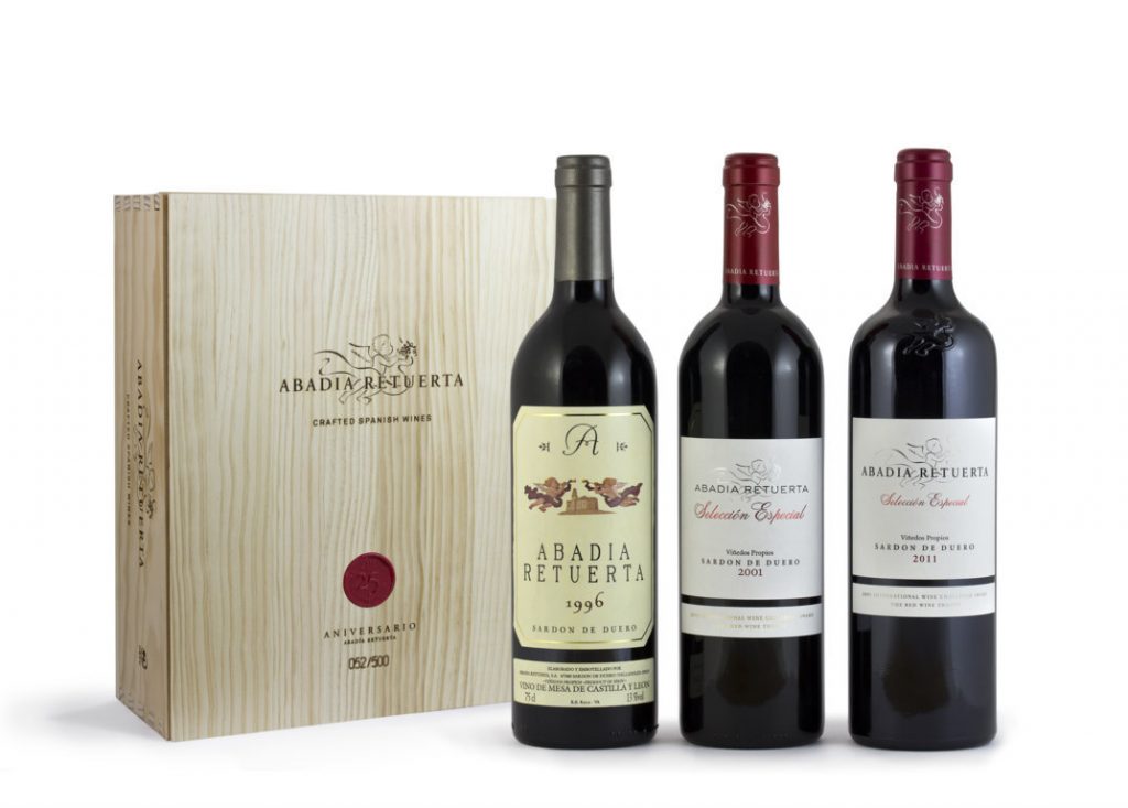 La bodega vallisoletana Abadía Retuerta propone, con motivo de su vigesimoquinto aniversario, un estuche de madera único y limitado de tan solo 500 unidades de tres de sus vinos más emblemáticos. El estuche Colección 25 Aniversario, ideal para los amantes del vino, está integrado por una botella de Abadía Retuerta 1996, el primer vino de la bodega; una botella de Selección Especial 2001; y otra de Selección Especial 2011.