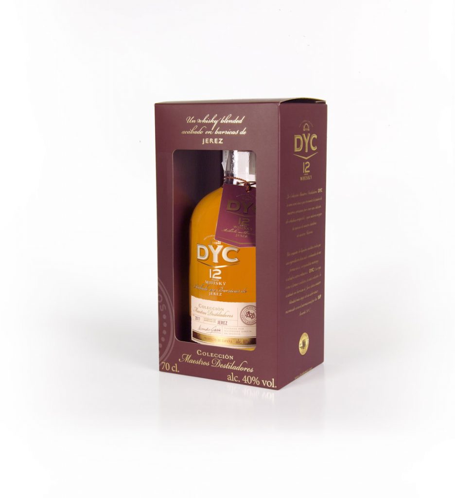 DYC 12 años es el primer lanzamiento de esta Colección. Doce años de envejecimiento y, por primera vez, un exclusivo acabado en barricas de Jerez le aportan una gran calidad en sus matices. Una extraordinaria combinación de ingredientes cosechados y envejecidos 100% en España le otorgan una suerte de aromas cálidos, tostados y vegetales que hacen de este blended un whisky perfecto para degustar solo, creando