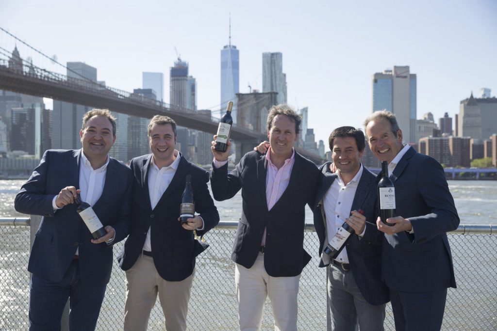 Ha sido la primera vez que cinco grandes bodegas del emblemático Barrio de la Estación de Haro (La Rioja) han viajado juntas al extranjero para mostrar la grandeza de sus vinos y la belleza de un destino único en el mundo. En el icónico The High Line de Manhattan, Rioja ha puesto el sello de los vinos de España con un evento único llamado “Rioja Railway Wine Experience”. En la imagen, de izquierda a derecha, Isaac Muga, de Bodegas Muga; Diego Pinilla, de Bodegas Bilbaínas Viña Pomal; Guillermo de Aranzabal, de La Rioja Alta, S.A.; Juan Antonio Leza, de Bodegas Gómez Cruzado; y Agustín Santolaya de Bodegas RODA.