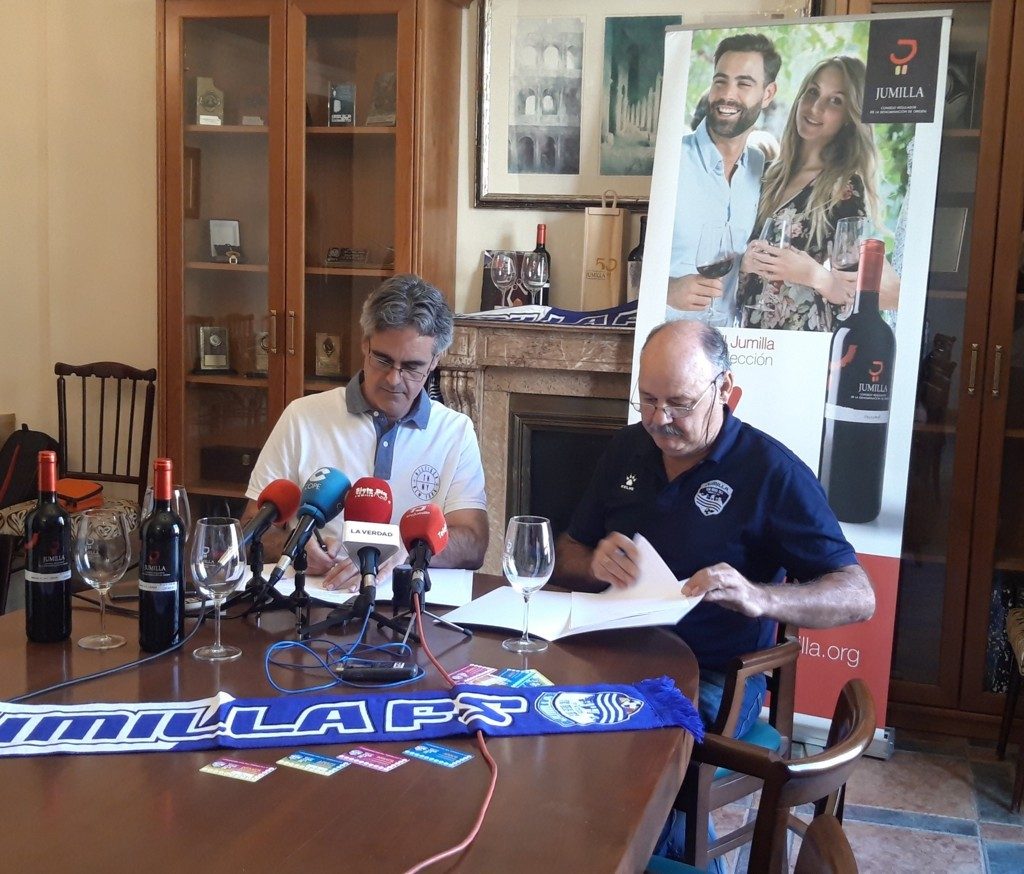 Recientemente ha tenido lugar la firma del convenio 2019-2022 entre Silvano García Abellán, presidente de la DOP Jumilla y José Jiménez, en representación de la Junta Directiva del Club Jumilla FS, quienes han cerrado el acuerdo por el que el Consejo Regulador colaborará con el club con clara intención de consolidar el equipo de fútbol sala e integrar a sus componentes en el ámbito de la comarca natural de la DOP Jumilla.