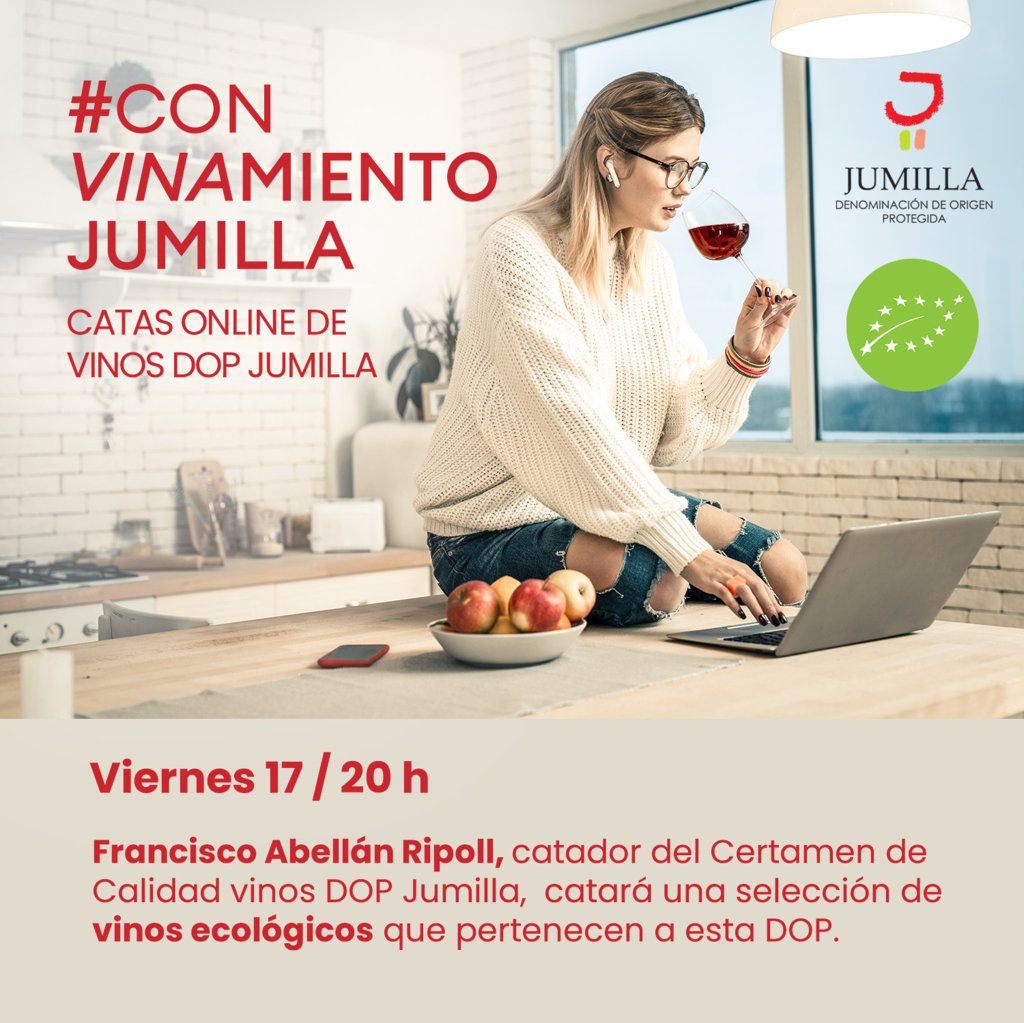 Dentro de su programa de «convinamientos», la DOP Jumilla anuncia su próxima convocatoria. Será este viernes, día 17, a las 20 h. desde Madrid, en esta ocasión, con Francisco Abellán Ripoll, catador del Certamen de Calidad de la DOP Jumilla, y de grandes concursos de vinos como Bacchus.