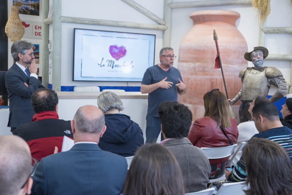 La Ruta del Vino de la Manchuela, que se encuentra en proceso de certificación ante Acevin, presentó en Madrid toda su oferta enoturística. En este evento, el presidente de la Ruta, Pedro Antonio González Jiménez, destacó el valor de este producto como nexo de unión de todas las potencialidades turísticas de una comarca que abarca 87 municipios de Cuenca y Albacete (Foto Miguel A. Muñoz)
