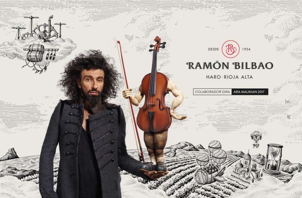 En su constante afán por descubrir más allá de lo esperado, Ramón Bilbao acompañará al violinista Ara Malikian en 28 conciertos de su gira mundial 2017, presentando su nuevo disco ‘La increíble historia de Violín’, en el que convierte al instrumento en personaje central de su espectáculo para contar su historia vital. Una iniciativa con la que Ramón Bilbao comparte los valores del virtuoso violinista y su afán por descubrir nuevos horizontes, como lo hace Ramón Bilbao en el mundo del vino, reinterpretando los paradigmas clásicos y creando un estilo único y con nombre propio en la tierra donde nacen sus vinos.