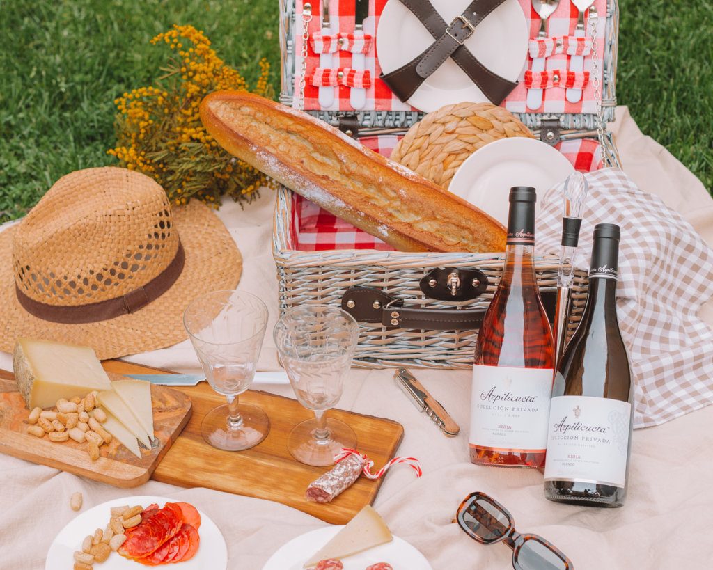 La bodega de vinos Azpilicueta lanza, junto con Cristina Oria, una cesta de picnic para regalar en el Día de la Madre con dos de sus referencias más especiales: rosado y blanco de su Colección Privada.